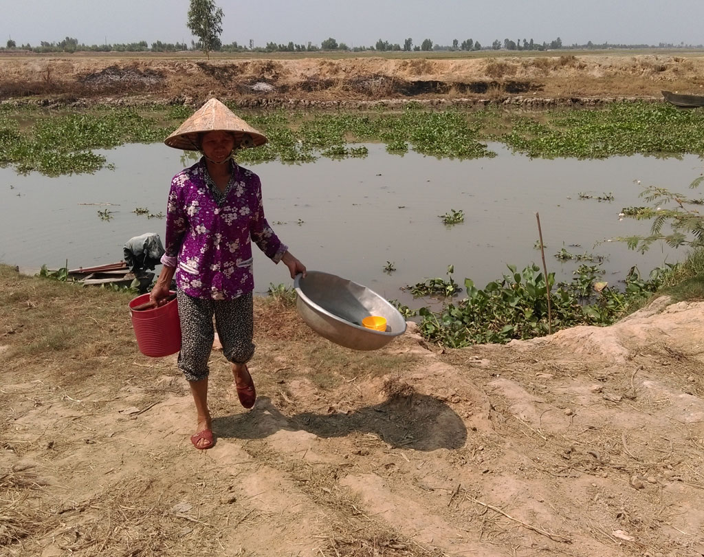 Hiện tại, một số hộ dân có điều kiện thì sử dụng môtưa bơm rút nước, còn những hộ không có điều kiện phải dùng can, xô ra kênh để xách nước về, thậm chí tắm giặt ngay tại kênh Sông Trăng cách đó hơn trăm mét dù biết nguồn nước bị ô nhiễm.