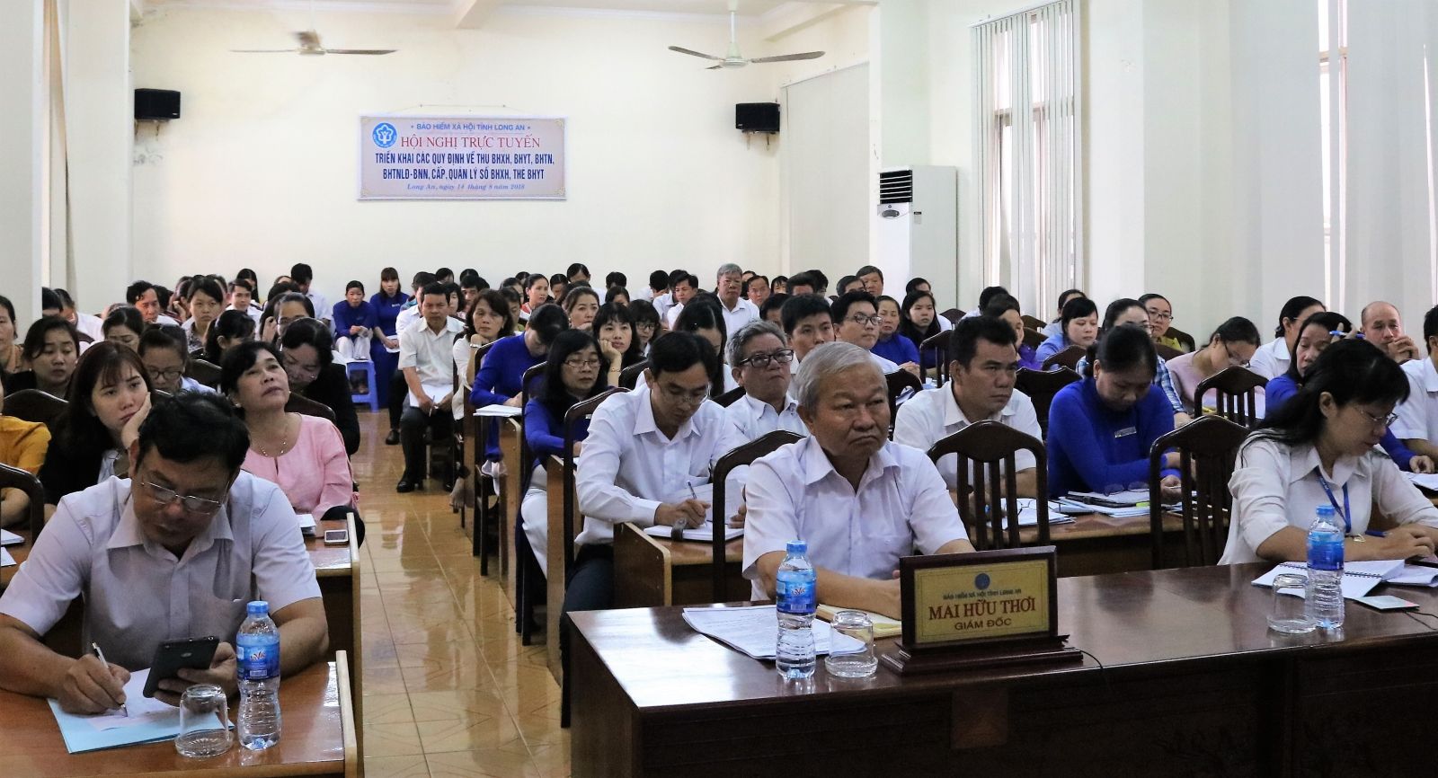 Giám đốc BHXH tỉnh Long An – Mai Hữu Thơi chủ trì tại điểm cầu Long An.