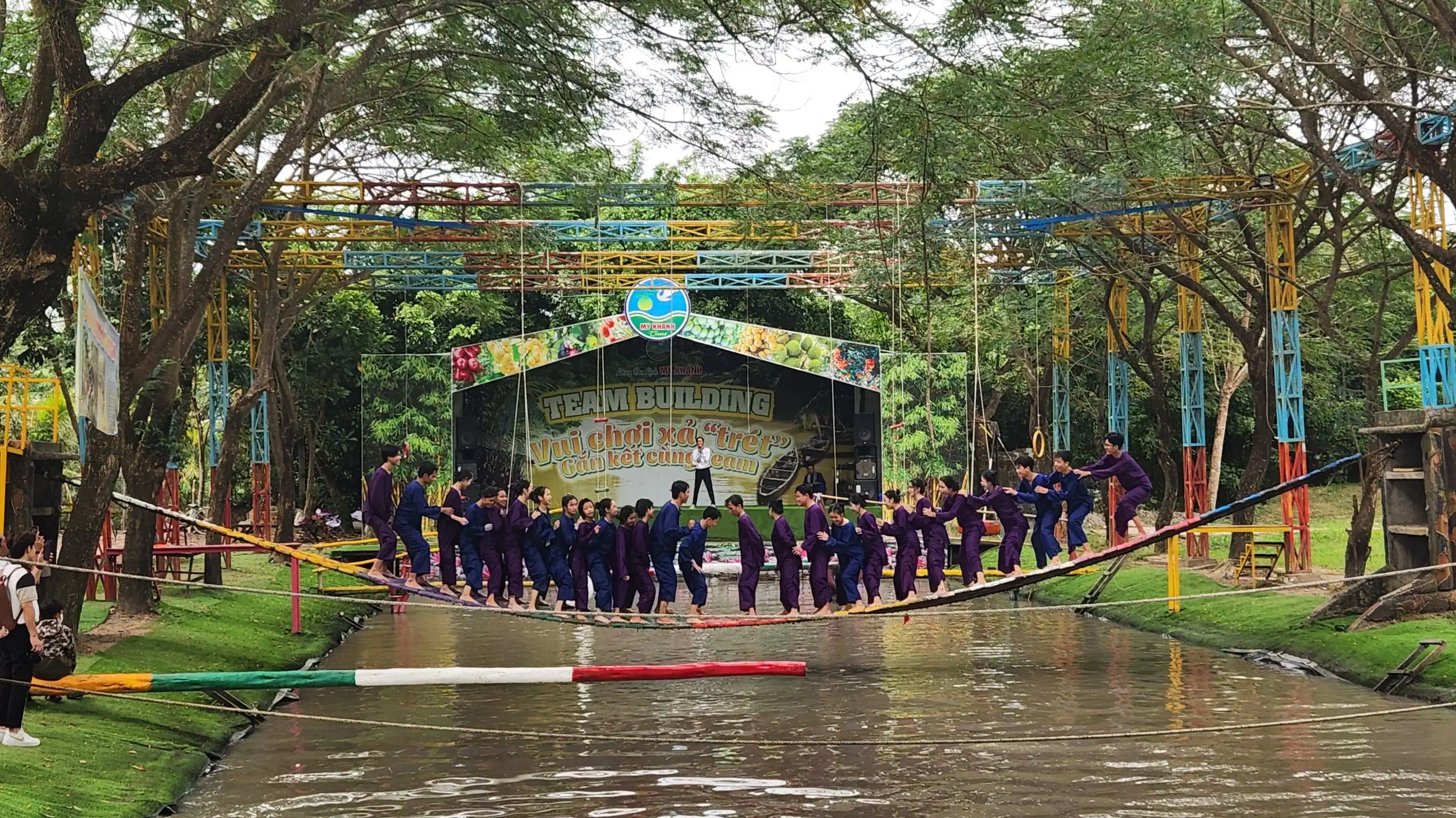 Với thế mạnh phát triển du lịch, xã Mỹ Khánh chọn lĩnh vực nổi trội trong xây dựng xã NTM kiểu mẫu “Giao thông gắn với cảnh quan môi trường và phát triển du lịch sinh thái”. Trong ảnh: Du khách trải nghiệm các trò chơi tại Làng du lịch Mỹ Khánh.
