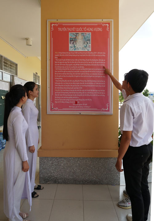 Hàng năm, cứ gần đến ngày Giỗ Tổ Hùng Vương, học sinh Trường THPT Hùng Vương (TP.Tân An) được nhà trường khuyến khích tìm hiểu về các đời vua Hùng cùng những truyền thuyết lịch sử.