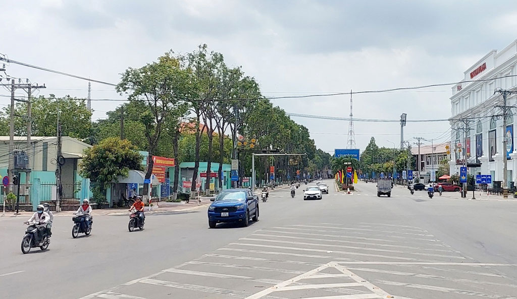 Đường Hùng Vương là tuyến đường chính của TP.Tân An