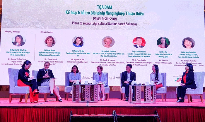 Các địa phương vùng ĐBSCL đề xuất cần có các giải pháp phù hợp cho vùng. Huy động các nguồn lực từ các thể chế tài chính trong và ngoài nước để triển khai nhóm biện pháp nông nghiệp thuận thiên phi công trình và nhóm giải pháp công trình phù hợp. Bên cạnh đó, cần liên kết khai thác tốt hơn các cơ chế chính sách đã có, gắn với huy động các nguồn lực để thực hiện về chuyển đổi số, ứng dụng trí tuệ nhân tạo, triển khai các mô hình thích ứng với biến đổi khí hậu, giảm phát thải, kinh tế tuần hoàn… Dịp này, các đối tác quốc tế như EU, Mỹ, Úc, FAO, UNDP, WWF, SNV, các quỹ tài chính quốc tế, tập đoàn, doanh nghiệp quốc tế và trong nước cũng cam kết cung cấp nguồn lực thực hiện các giải pháp nông nghiệp thuận thiên; hình thành mạng lưới kết nối các nhà đầu tư quốc tế với các địa phương và doanh nghiệp trong nước cho khu vực ĐBSCL.