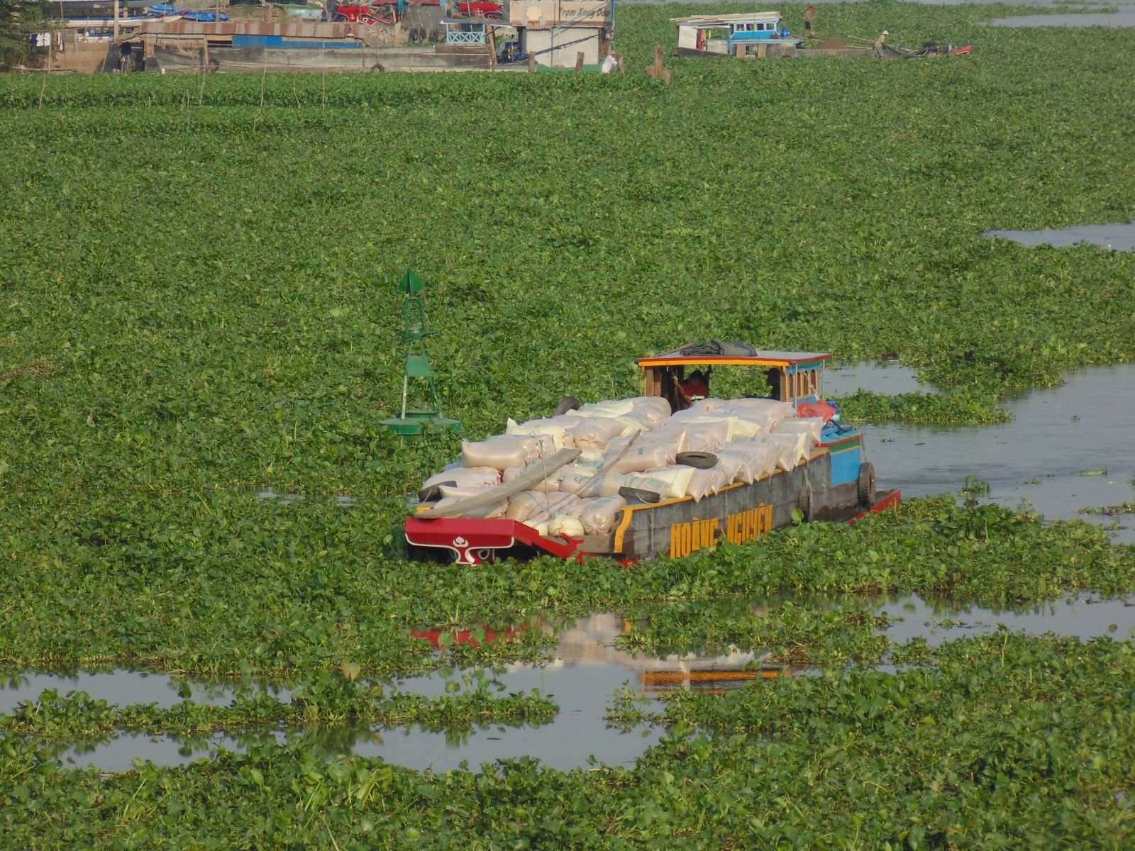 Lục bình dày đặc cản trở vận chuyển bằng đường thủy