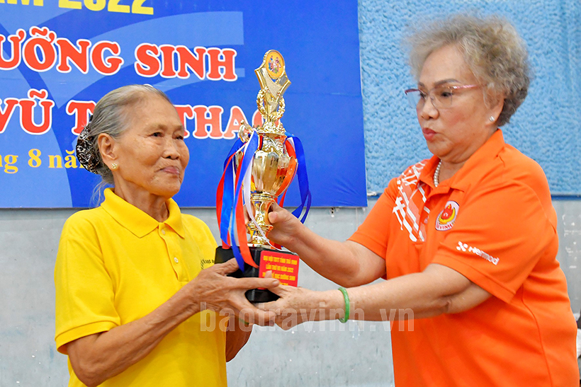 Ngoài ra, Ban tổ chức còn trao giải Phúc Lộc Thọ cho vận động viên lớn tuổi nhất. Giải này thuộc về cụ Nguyễn Thị Vân Anh, sinh năm 1943 đến từ CLB Thạnh Hiệp, xã Nhị Long Phú, huyện Càng Long.