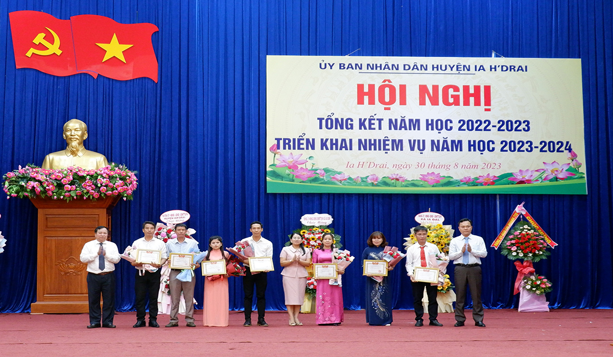 | Lãnh đạo huyện Ia H'Drai khen thưởng tập thể, cá nhân có thành tích xuất sắc trong năm học 2022-2023. |