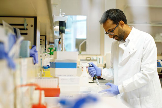 Chuyên gia Ravindra Gupta làm việc trong phòng thí nghiệm hôm 28/2/2019 Ảnh: The New York Times