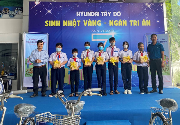 Theo đó, Chương trình thiện nguyện “Hyundai Tây Đô - Cùng em đến trường” trao tặng 30 xe đạp và 300 quyển tập đến 30 em HS có hoàn cảnh khó khăn tại các trường THCS trên địa bàn Quận Bình Thủy, TP. Cần Thơ. Ông Nguyễn Ngọc Vĩnh – Tổng Giám đốc (TGĐ) Hyundai Tây Đô, chia sẻ: “Công ty mong muốn đóng góp một phần nhỏ vào hoạt động xã hội tại địa phương, nhằm phần nào tạo động lực để các em học sinh có điều kiện đến trường được tốt hơn, từ đó nâng cao kết quả học tập và góp phần phát triển cho quê hương, đất nước sau này”.