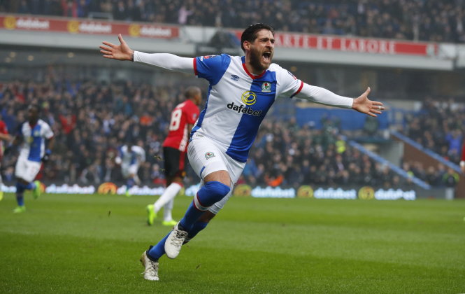 Niềm vui của Daniel Graham sau khi mở tỉ số cho Blackburn. Ảnh: Reuters