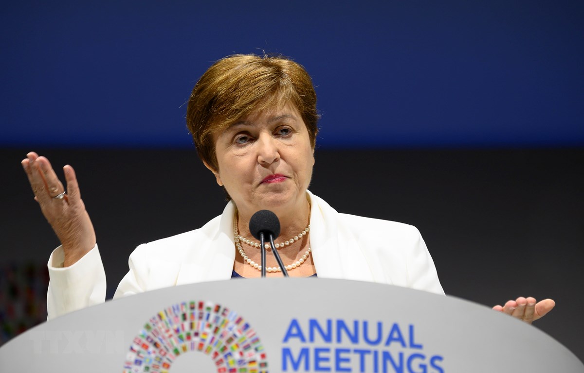 Tổng Giám đốc IMF - bà Kristalina Georgieva phát biểu tại Hội nghị thường niên Quỹ Tiền tệ Quốc tế (IMF) và Ngân hàng Thế giới (WB) ở Washington, DC,Mỹ, ngày 18/10. (Ảnh: AFP/TTXVN)