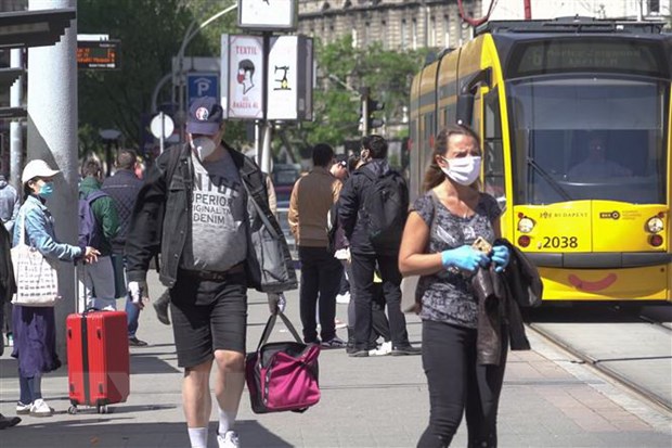 Người dân đeo khẩu trang phòng lây nhiễm COVID-19 tại Budapest, Hungary. (Ảnh: THX/TTXVN)