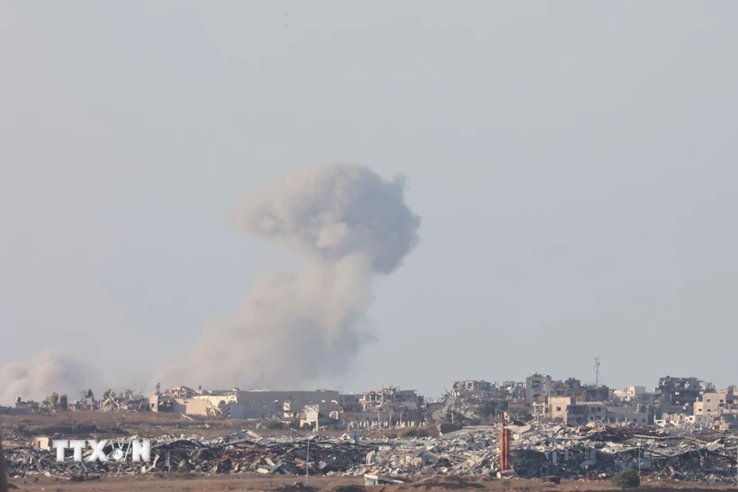 Khói bốc lên sau cuộc không kích của Israel xuống Dải Gaza ngày 11/8/2024. (Ảnh: THX/TTXVN)
