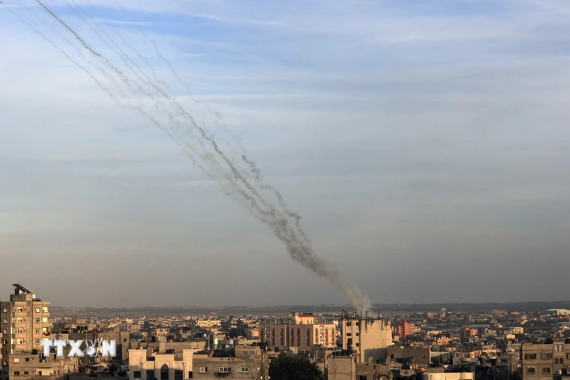 Rocket được phóng về phía lãnh thổ Israel (Ảnh: AFP/TTXVN)