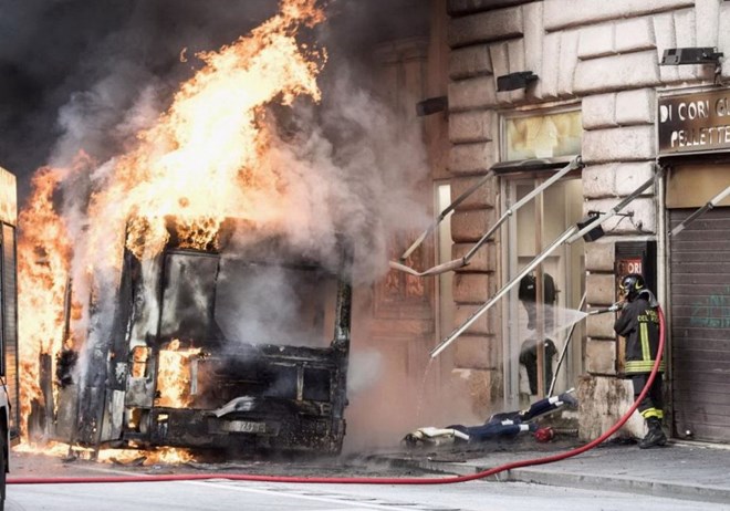 Italy: Xe buýt chở khách bốc cháy và phát nổ tại trung tâm thủ đô