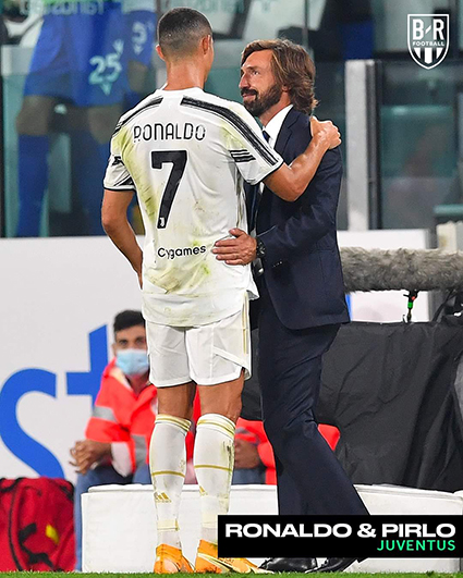 Ronaldo giúp HLV Pirlo (phải) có màn khởi đầu mỹ mãn. Ảnh: BR