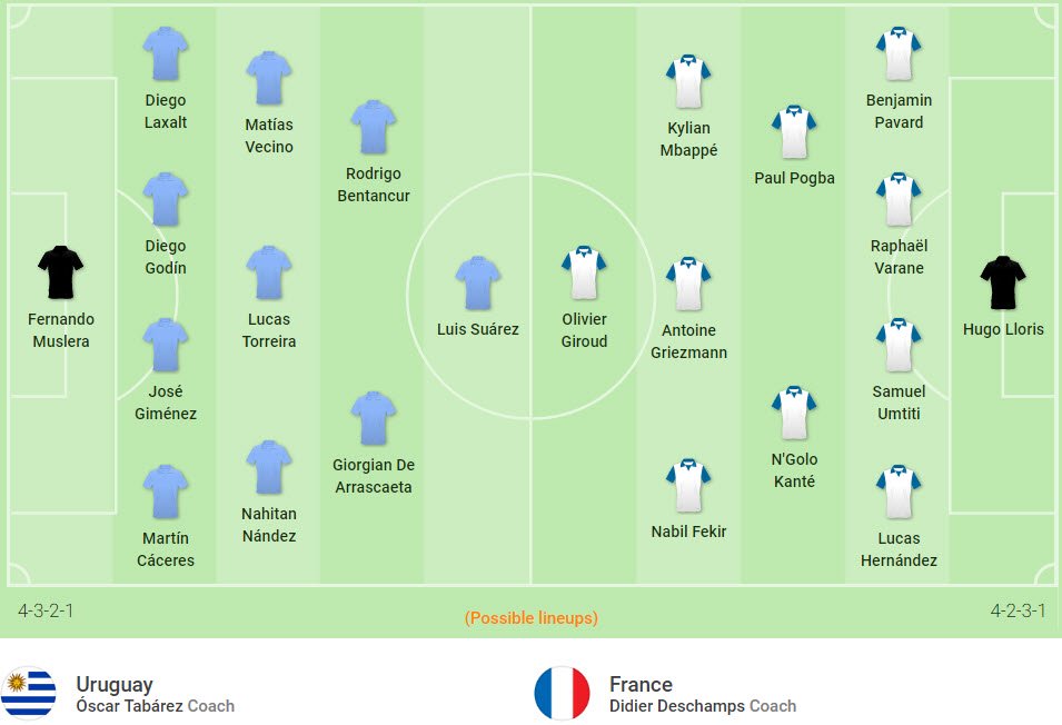 Đội hình dự kiến Uruguay và Pháp