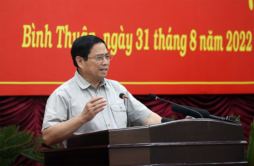 | Thủ tướng Chính phủ Phạm Minh Chính phát biểu tại buổi làm việc với lãnh đạo chủ chốt tỉnh Bình Thuận |