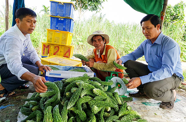 Gia đình ông Trần Quang Phục ở ấp Ðông Mỹ, đã nhiều năm gắn bó với nghề trồng rau màu. Năm nay, kể từ khi được cung ứng giống và bao tiêu nông sản theo chương trình ký kết giữa doanh nghiệp và UBND xã Ðông Thắng, gia đình ông không còn lo lắng về đầu ra cho sản phẩm như trước. Ông Phục chia sẻ: "Vụ mùa này, tôi trồng giống khổ qua rừng Thái. Ðây là giống mới, do doanh nghiệp cung ứng với giá thành rẻ và đạt chất lượng, năng suất khá cao". Theo ông Phục, chỉ sau 45 ngày, khổ qua cho thu hoạch. Thời gian thu hoạch có thể kéo dài 5 tháng. "Hiện nay, doanh nghiệp thu mua khổ qua với giá sàn 8.000 đồng/ký. Bình quân mỗi ngày, tôi thu hoạch 300-400 ký. Tính ra, lời hơn 200 triệu đồng/năm" - ông Phục nói.