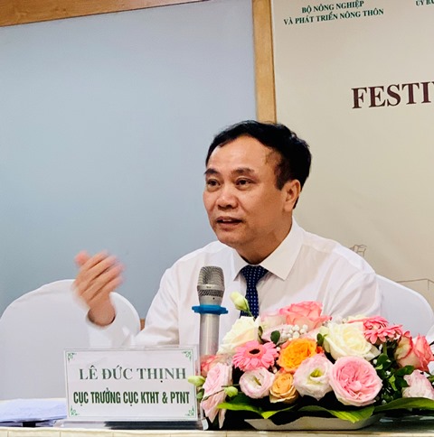 | Ông Lê Đức Thịnh, Cục trưởng Cục KTHT&PTNT, Trưởng Ban tổ chức Festival trả lời tại họp báo (Ảnh: HNV) |