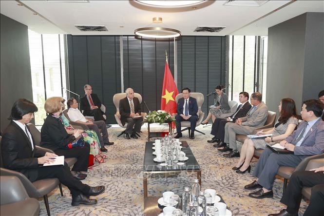 Trong khuôn khổ chuyến thăm chính thức Bulgaria, chiều 24/9, tại thủ đô Sofia, Chủ tịch Quốc hội Vương Đình Huệ đã tiếp Chủ tịch Hội hữu nghị Bulgaria - Việt Nam Simeon Dimchev.