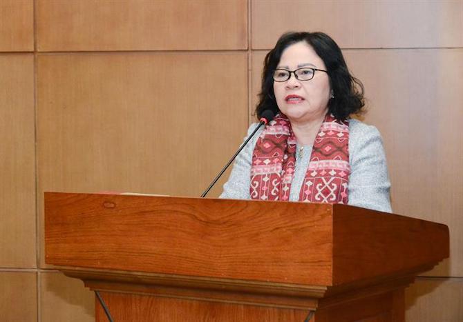 | Thứ trưởng GDĐT Ngô Thị Minh phát biểu tại hội nghị. Ảnh: TH. |