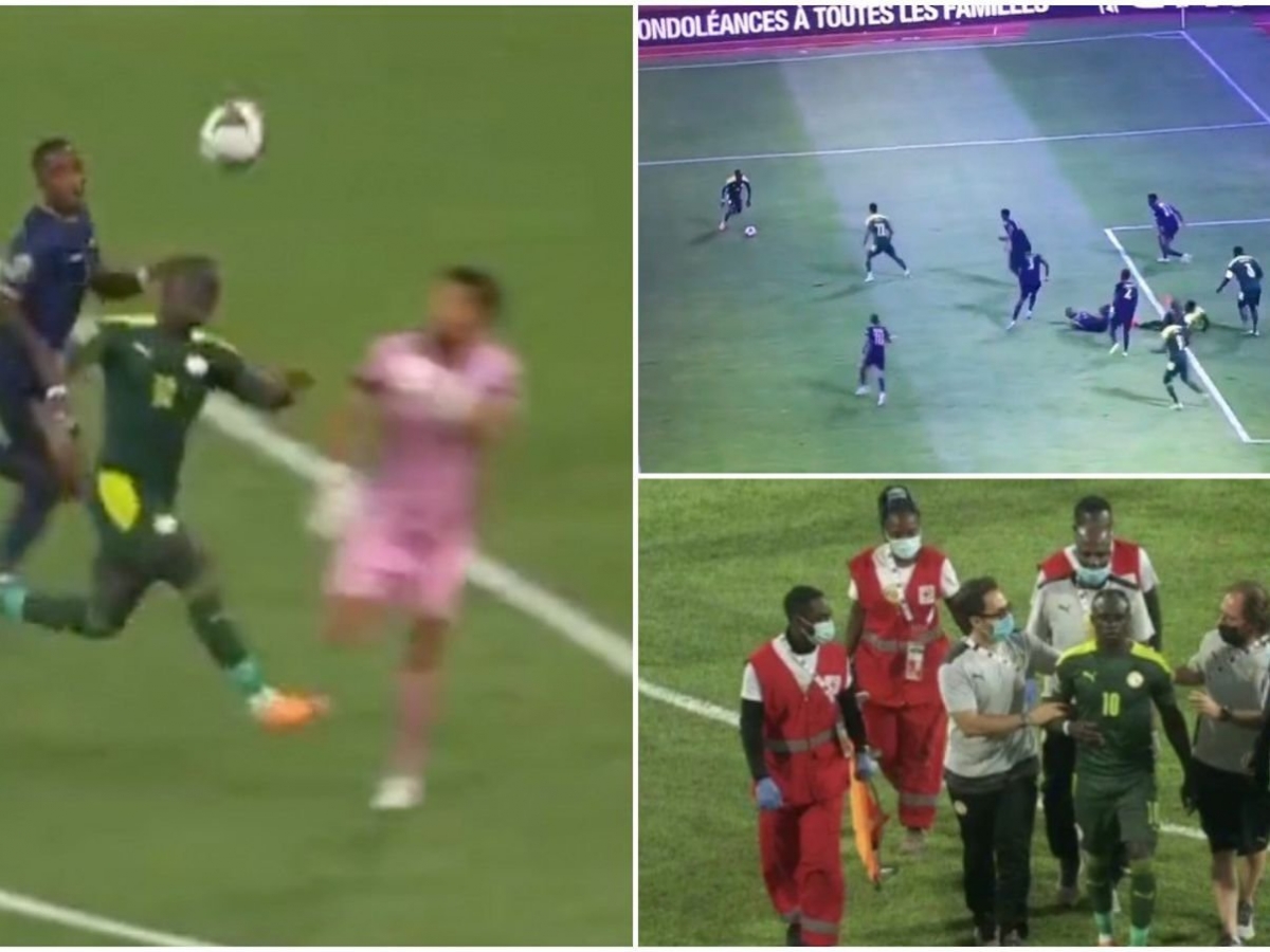 Mane va chạm mạnh với thủ môn Vozinha ở phút 57 nhưng tiếp tục thi đấu thêm 13 phút và ghi bàn rồi mới rời sân. (Ảnh: Gimmesports)