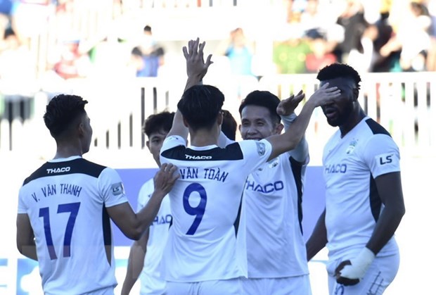 Hoàng Anh Gia Lai tạm leo lên tốp 4. (Ảnh: Quang Thái/TTXVN)