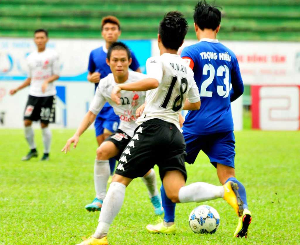 Long An (áo trắng) có trận hòa không bàn thắng trước An Giang trên sân nhà ở vòng đấu cuối giải BĐ hạng Nhì QG 2016 - Ảnh: Anh Tuấn