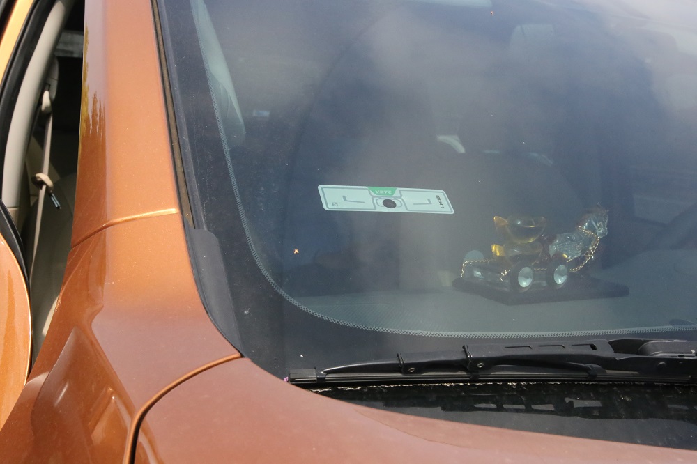 | Thẻ thu phí tự động không dừng (VETC) được dán trên 1 chiếc ô tô. |