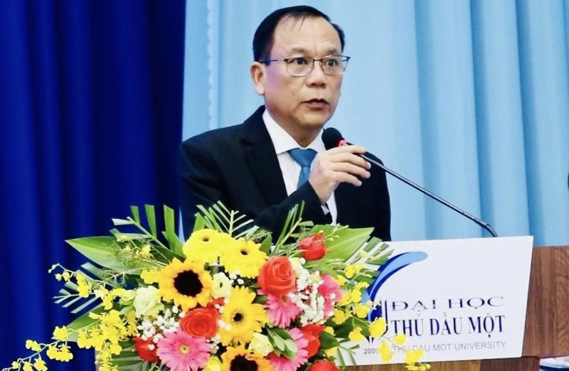 | TS Nguyễn Quốc Cường, Hiệu trưởng Trường Đại học Thủ Dầu Một phát biểu tại Lễ khai giảng. |