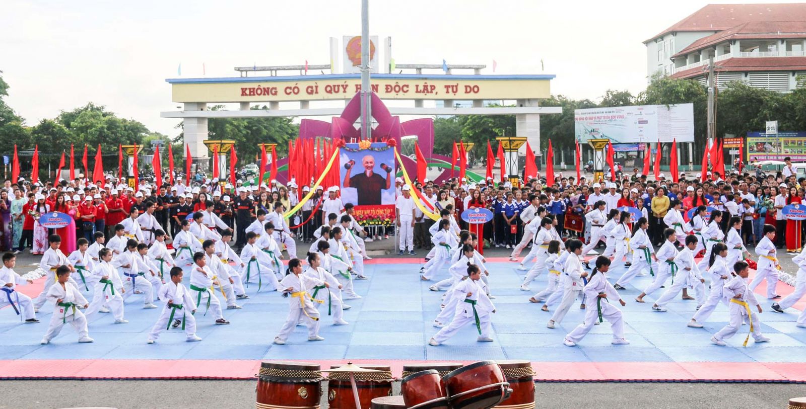 Màn đồng diễn võ thuật trong lễ khai mạc.