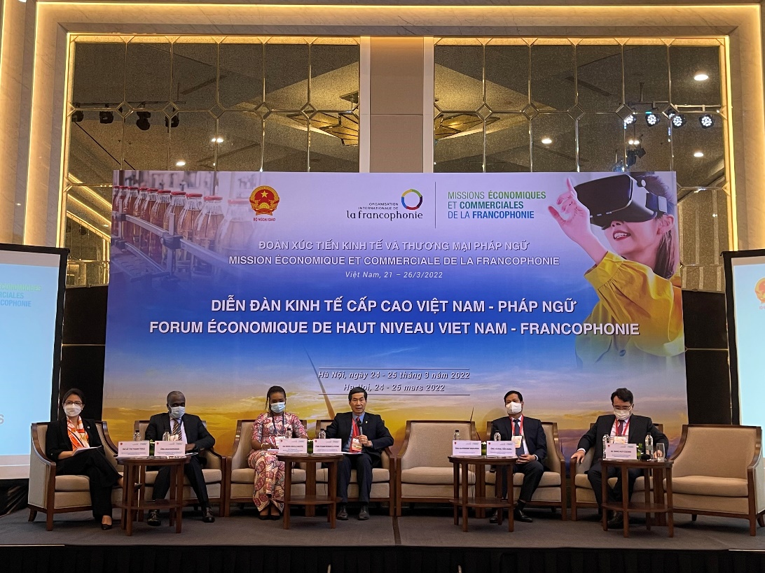 Trong khuôn khổ Diễn đàn, Bộ Công Thương cũng đã phối hợp với OIF tổ chức 3 phiên thảo luận với chuyên đề: Thúc đẩy quan hệ đối tác nông nghiệp giữa Việt Nam và Pháp ngữ; Hợp tác giữa các doanh nghiệp nhằm đáp ứng nhu cầu về năng lượng bền vững tại Việt Nam và trong cộng đồng Pháp ngữ; Hợp tác kinh doanh các sản phẩm và dịch vụ kỹ thuật số tại Việt Nam và trong cộng đồng Pháp ngữ. Đại diện các đơn vị: Cục Điện lực và Năng lượng tái tạo; Cục Xúc tiến thương mại và Vụ Thị trường châu Á – châu Phi đã có các bài phát biểu tham luận tại cả 3 phiên thảo luận.