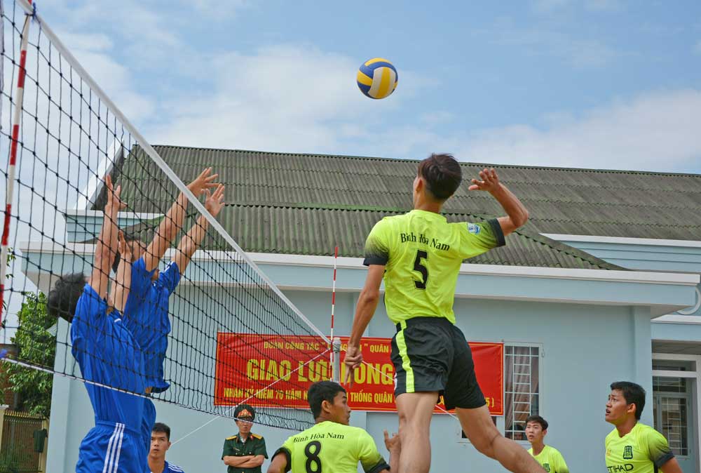 Số 5 - đội bóng xã Bình Hòa Nam liên tục ghi điểm với những cú đánh uy lực