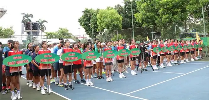 Các đoàn tham gia Giải vô địch quần vợt quốc gia năm 2024. Ảnh: Thùy Dung - TTXVN