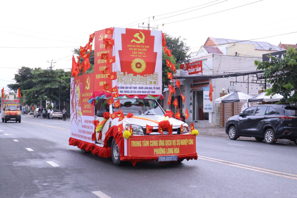 Xe loa tuyên truyền cổ động của phường Long Hoa