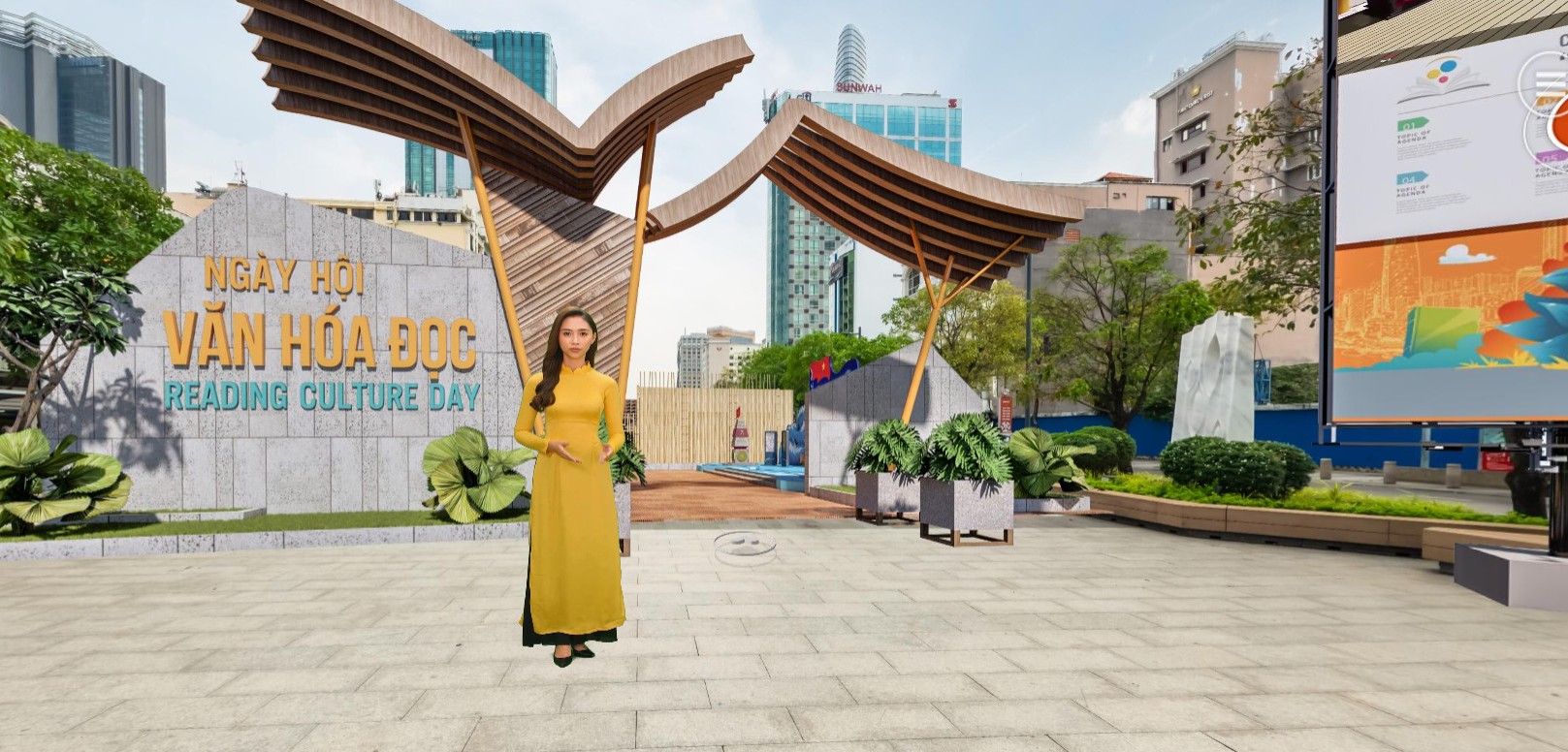 Lần đầu tiên không gian đường Nguyễn Huệ được đưa lên nền tảng kỹ thuật số của một không gian lễ hội trực tuyến bằng công nghệ thực tế ảo, thực tế ảo tăng cường, với không gian văn hóa 360 Model các tiểu cảnh đa dạng: Biển đảo Việt Nam, nhà ba miền Bắc – Trung – Nam, Bảo tàng, Nhà hát, Thư viện, Nhà sách, Sân vận động, sân khấu múa rối nước, các Booth thư viện thông minh… gắn trên trục đường chính Nguyễn Huệ theo hình thức Realistic VR Tour kết hợp Conceptual Vr Tour.