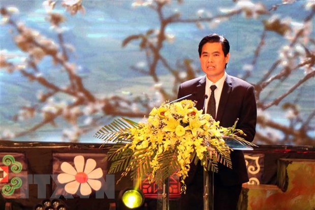Ông Hoàng Quốc Khánh, Chủ tịch UBND tỉnh Sơn La phát biểu tại kễ khai mạc. (Ảnh: Hữu Quyết/TTXVN)