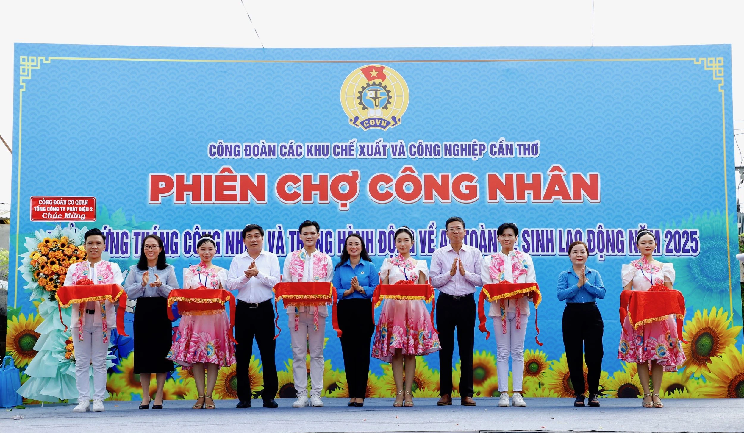 Các đại biểu cắt băng khai mạc “Phiên chợ công nhân”.