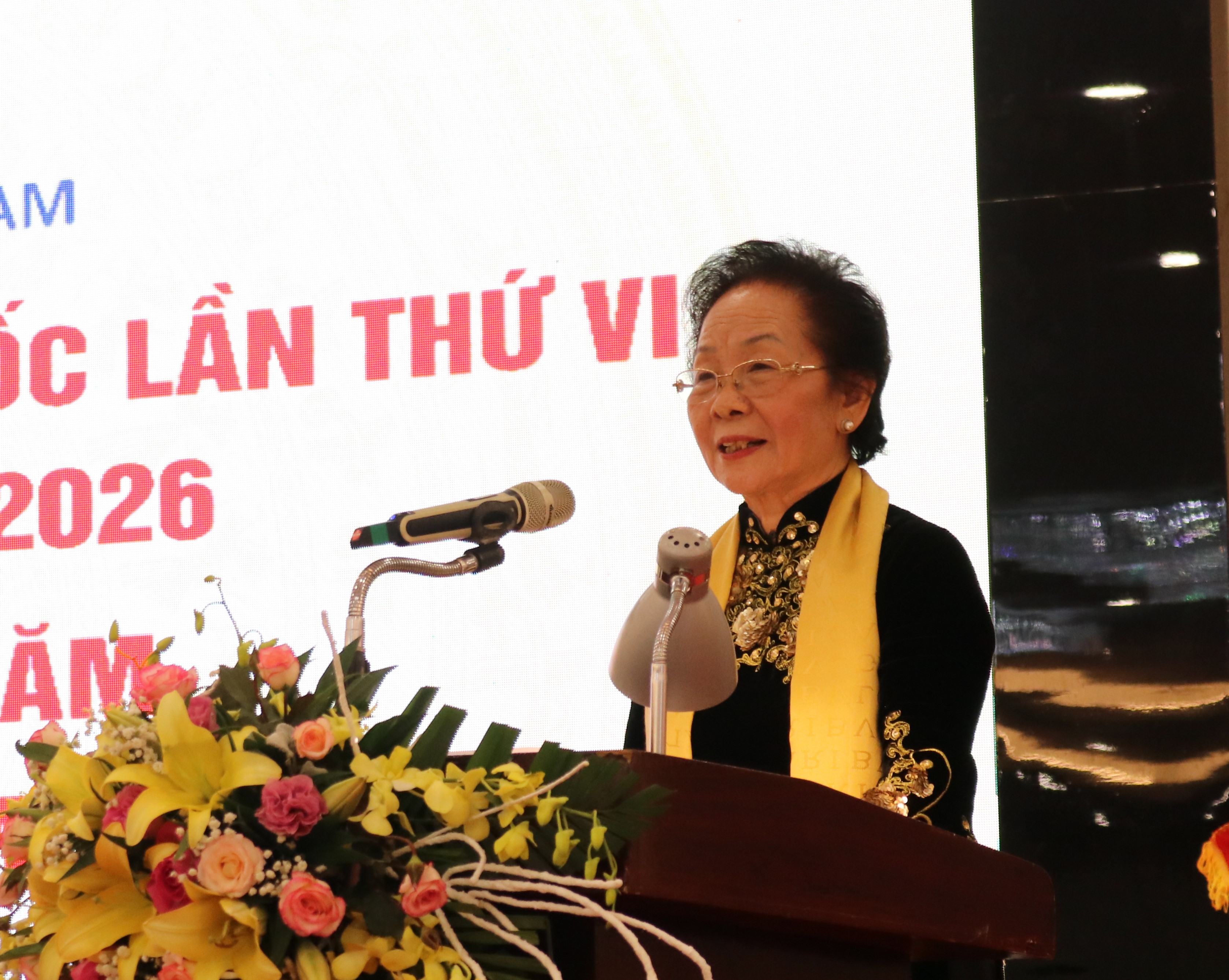 | GS.TS Nguyễn Thị Doan, Chủ tịch Hội Khuyến học Việt Nam khóa V phát biểu khai mạc Đại hội đại biểu toàn quốc Hội Khuyến học Việt Nam lần thứ VI. Ảnh: VA |