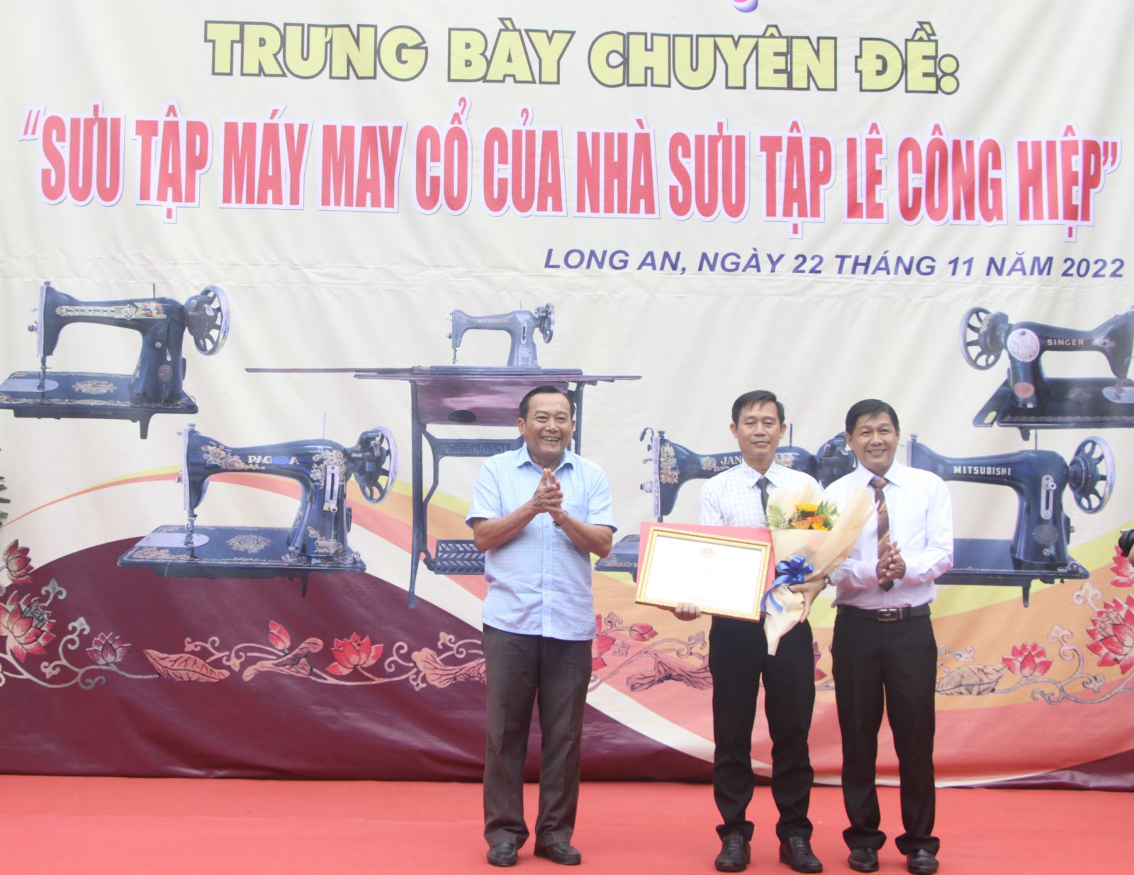 Nhà sưu tập Lê Công Hiệp là người sưu tập máy may nhiều nhất tại Long An. Ông dành rất nhiều thời gian, công sức và kinh phí để sưu tập hàng trăm máy may các loại. Lần này, ông tặng cho Bảo tàng - Thư viện tỉnh 5 máy may cổ trị giá trên 100 triệu đồng và đem 50 máy may cổ đến Bảo tàng tỉnh để phối hợp tổ chức trưng bày.