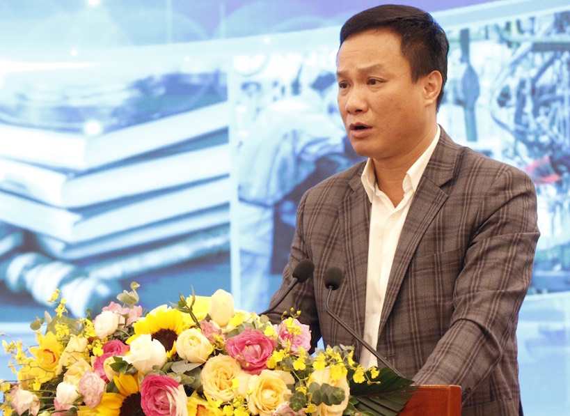 | Phó Chủ tịch thường trực UBND tỉnh Gia Lai Đỗ Tiến Đông tham luận tại Hội thảo. |