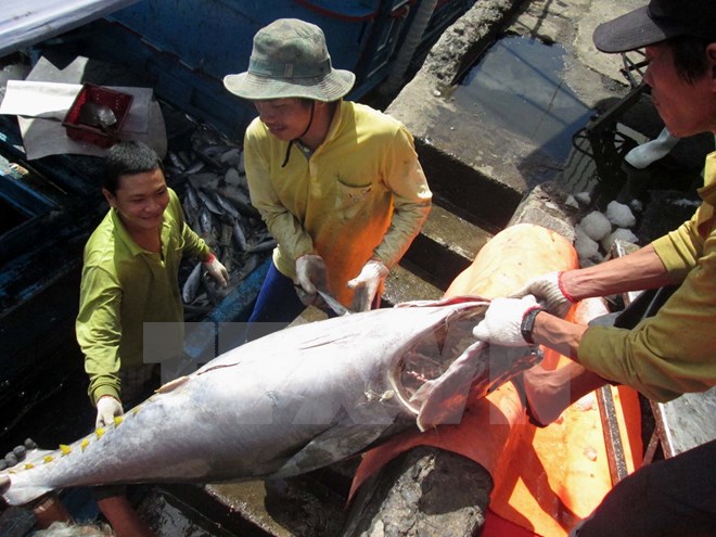 Ngư dân Khánh Hòa được mùa các loại cá ngừ. (Ảnh: Nguyên Lý/TTXVN)