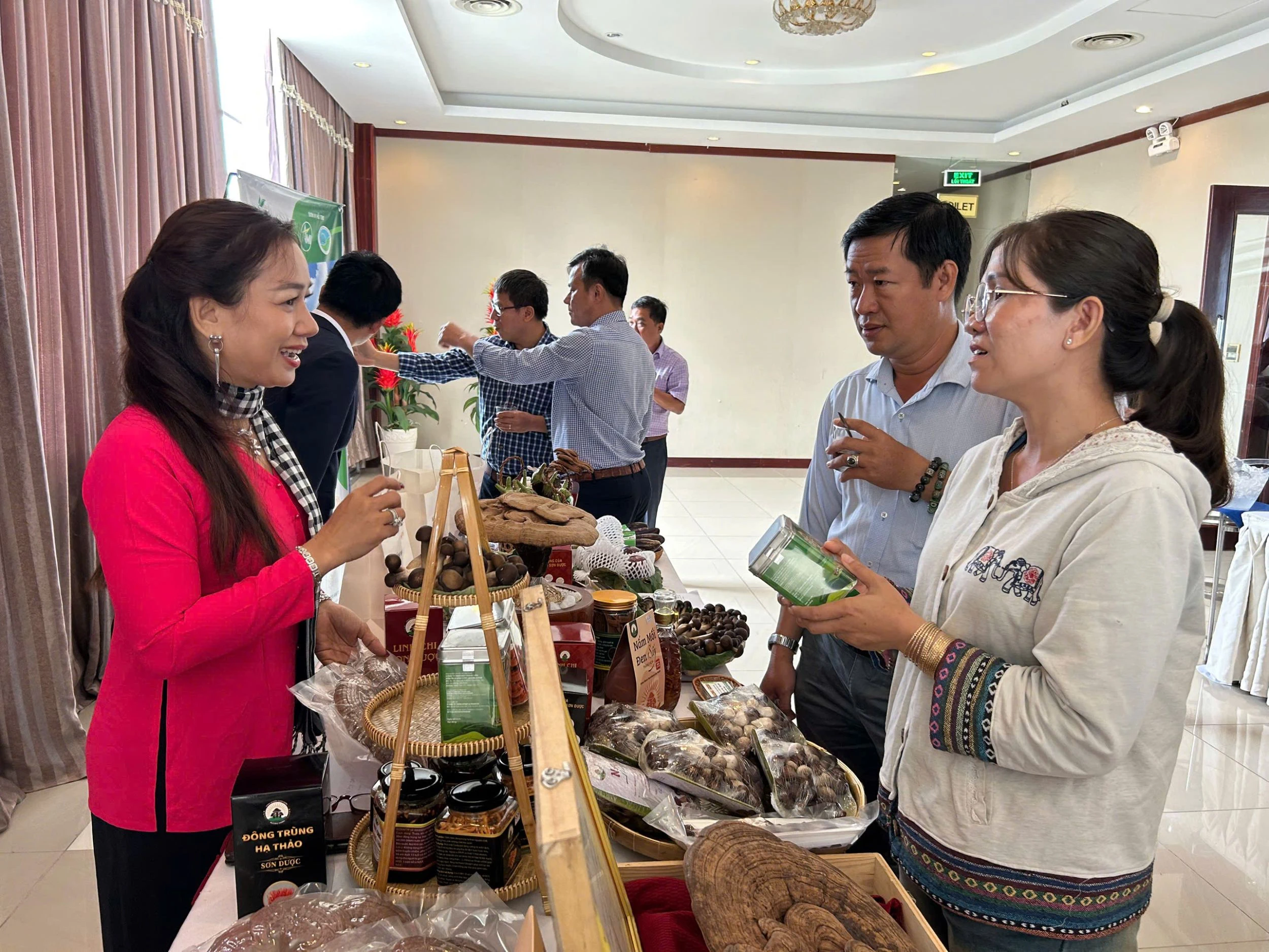 Các sản phẩm nông sản từ mô hình ĐMTNN trưng bày tại hội thảo Hiện trạng và tiềm năng phát triển điện mặt trời trong sản xuất nông nghiệp tại Việt Nam.