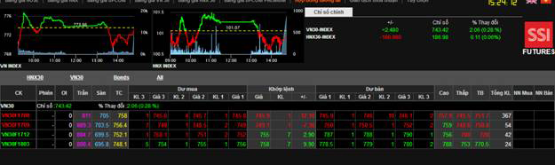 Kết thúc phiên giao dịch vào lúc 14 giờ 45 phút cùng ngày Chứng khoán phái sinh đã có được tổng cộng 487 hợp đồng được thực hiện với tổng giá trị khoảng 36,5 tỷ đồng và giá trị ký quỹ 15% là 5,5 tỉ đồng.