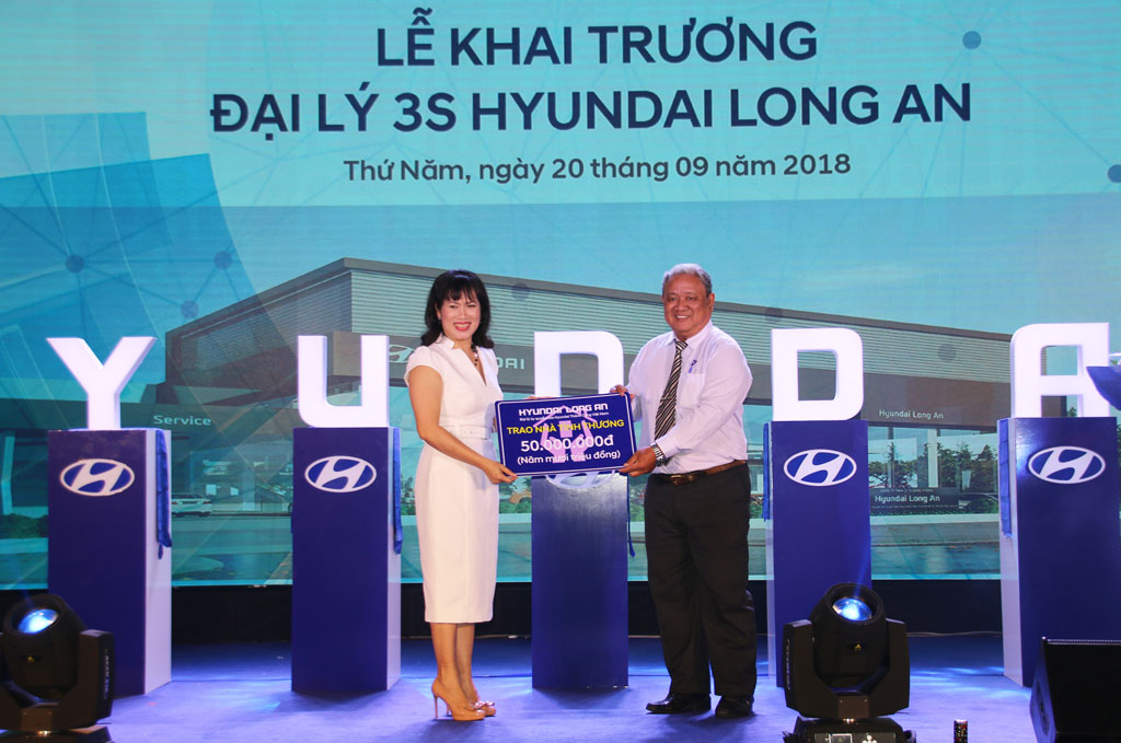 Dịp này, Hyundai Long An trao 50.000.000đ cho UB.MTTQ Việt Nam TP.Tân An để xây dựng nhà tình thương cho người dân khó khăn./.