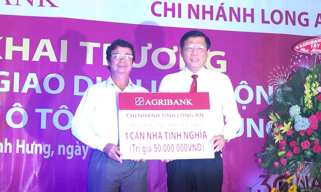 Dịp này, Giám đốc Agribank Long An - Nguyễn Kim Thài trao 50 triệu đồng hỗ trợ xây nhà tình nghĩa trên địa bàn huyện./.