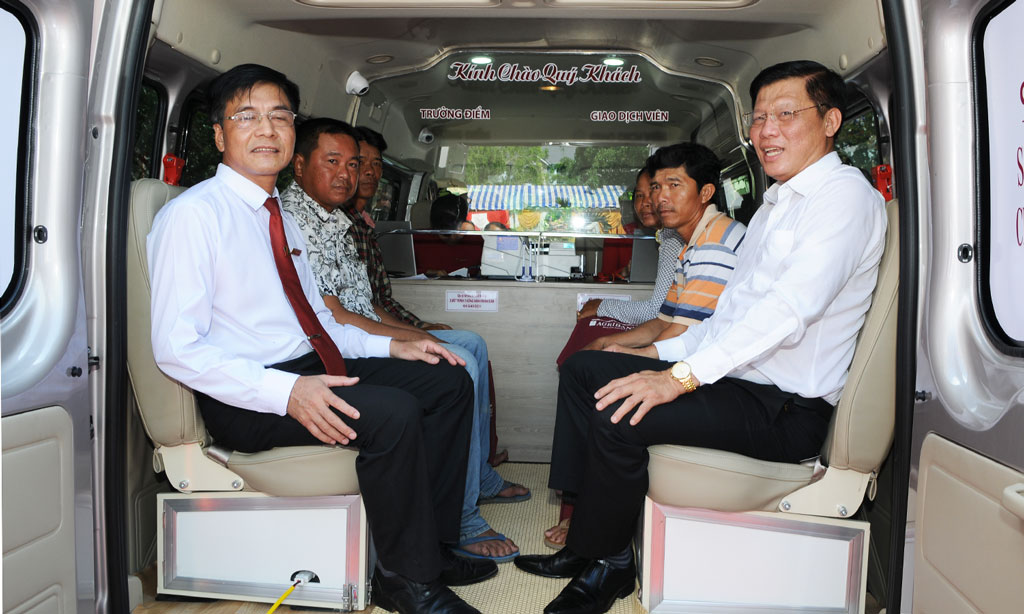 Đây là điểm giao dịch lưu động bằng ô tô đầu tiên trên địa bàn tỉnh, cung cấp hầu hết các sản phẩm dịch vụ của ngân hàng, phục vụ khách hàng là nông dân tại 9 xã: Vĩnh Trị, Thái Trị, Hưng Điền A, Khánh Hưng, Thái Bình Trung, Vĩnh Bình, Tuyên Bình, Tuyên Bình Tây, Vĩnh Thuận với 4 điểm giao dịch tại trụ sở UBND các xã: Khánh Hưng (thứ 3), Hưng Điền A (thứ 4), Tuyên Bình Tây (thứ 5) và Tuyên Bình (thứ 6). Thời gian giao dịch: Buổi sáng từ 8 giờ đến 11 giờ 30 phút, chiều từ 13 giờ 30 phút đến 15 giờ 30 phút.