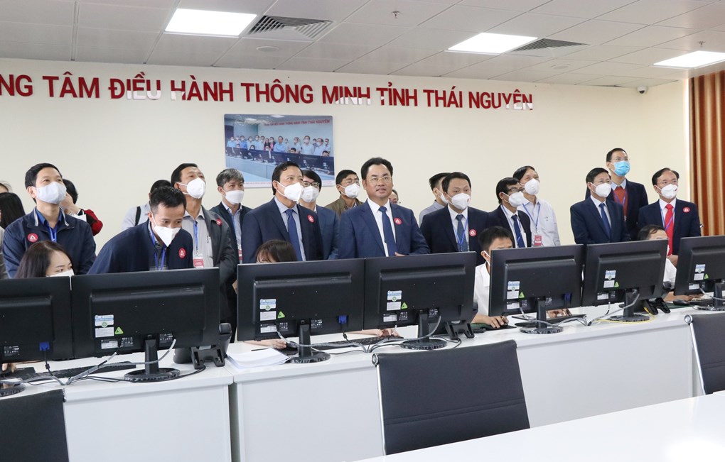 | Bên lề Lễ khai trương ứng dụng ThaiNguyen ID, các đại biểu đã thăm Trung tâm Điều hành thông minh tỉnh Thái Nguyên (IOC). |