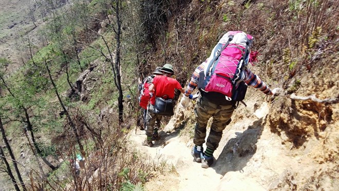 Du khách trong hành trình trình leo núi ở Bát Xát. (Ảnh minh họa: Cao Hương/TTXVN)