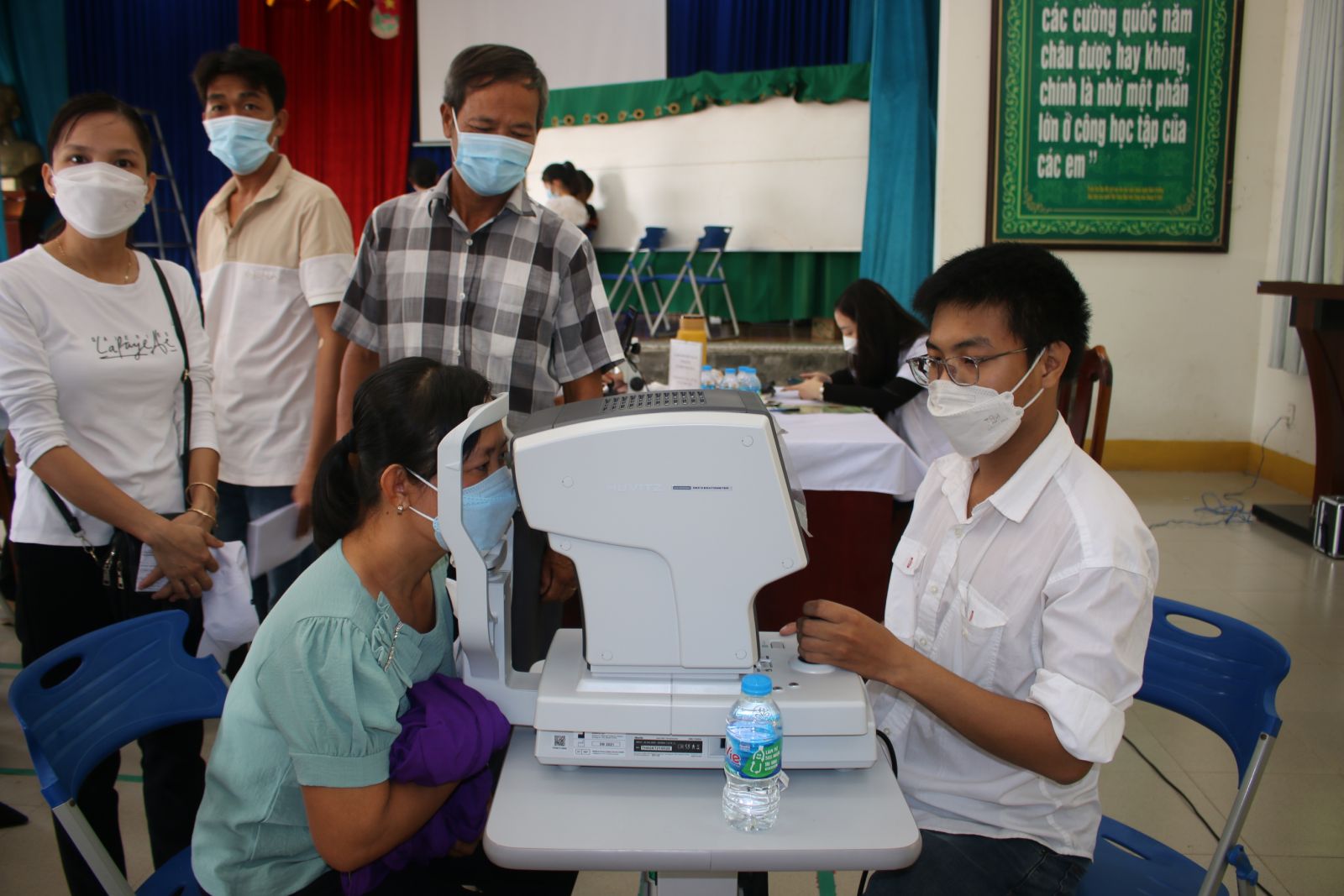 Hơn 260 cán bộ, giáo viên, công nhân viên ở các trường trên địa bàn thị trấn Vĩnh Hưng và xã Khánh Hưng được các y, bác sĩ khám tổng quát; khám khúc xạ, bệnh lý mắt; tầm soát tiểu đường, viêm gan siêu vi B, ung thư gan; khám tư vấn hậu Covid,… Qua đó, giúp phát hiện và điều trị sớm các bệnh này.