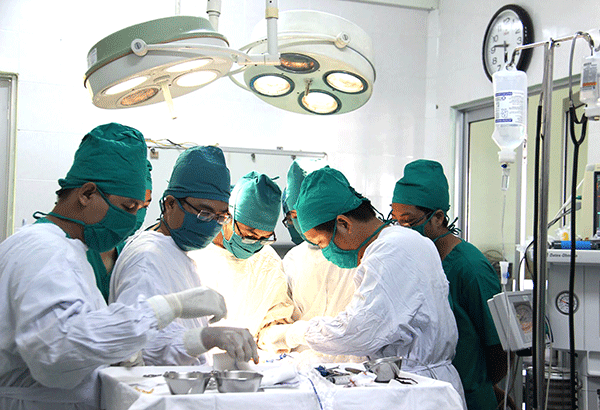 Các bác sĩ Bệnh viện Tai Mũi Họng TP Cần Thơ phẫu thuật cắt thanh quản bán phần điều trị cho bệnh nhân bị ung thư thanh quản.